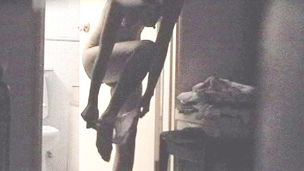 次の朝も同じ光景を目にしました。同じ時間に廊下から覗いてみると、前日と同じような極小のスキャンティで、ヒップ半分以上はみ出すようなローライズタイプでした。